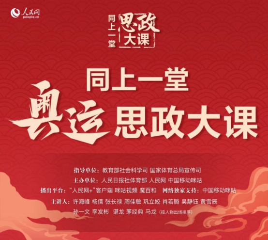 为深入贯彻落实习近平总书记关于深化思想政治理论课改革创新和“大思政课”的重要指示批示精神,在教育部社科司、国家体育总局宣传司指导下,人民日报社体育部、人民网举办“同上一堂奥运思政大课”活动。根据指示精神,9月25日下午14时,上海中侨职业技术大学马克思主义学院组织全校2021 级新生共同观看了这堂非常精彩的“同上一堂奥运课”线上思政课。