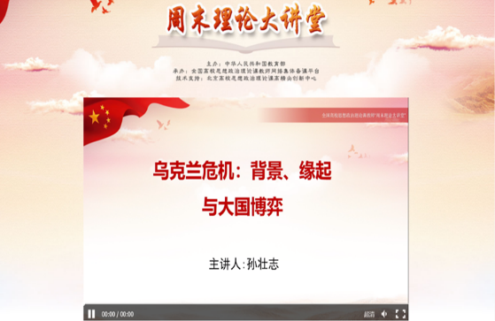 本学期开始,在学校党委的关心和教务处等部门的支持下,马克思主义学院每个教学周的周五下午都定期组织收看“周末理论大讲堂”,旨在不断提升全体党员的党性修养、思政课教师的理论素养及教学能力。疫情期间,为了能够更好地组织教师学习,马克思主义学院克服困难,积极组织教师在线集体学习第77讲和第78讲。其中,第77讲由中国社科院俄罗斯东欧中亚研究所所长孙壮志主讲。孙壮志以《乌克兰危机:背景、缘起与大国博弈》为主题,从乌克兰危机爆发的背景入手,通过大量的事实和辩证的分析,全面客观地呈现了乌克兰危机的全貌;第78讲由全国政协常委、中国人民大学校长刘伟主讲。刘伟以《稳定经济增长 完善宏观治理——我国经济发展趋势及宏观调控政策分析》为主题,向教师们解读了习近平总书记的重要文章《扎实推动共同富裕》、《不断做强做优做大我国数字经济》以及我国经济发展趋势及宏观调控政分析等内容。