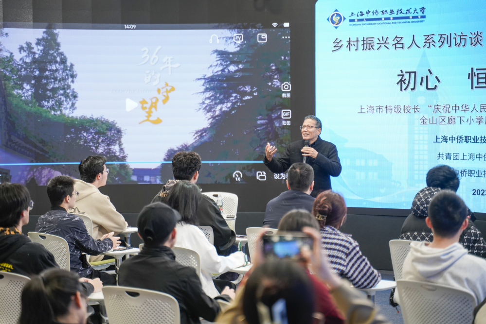 2023年3月31日下午2点,上海中侨职业技术大学马克思主义学院举办乡村振兴名人系列访谈活动,邀请上海市特级校长、“庆祝中华人民共和国成立70周年纪念章”获得者、金山区廊下小学原书记、校长朱保良作为重要访谈者莅临中侨大学,作“初心 恒心 壮心”主题讲座,受到马克思主义学院教师、模拟政协协会成员以及其他专业学生代表的热烈欢迎。