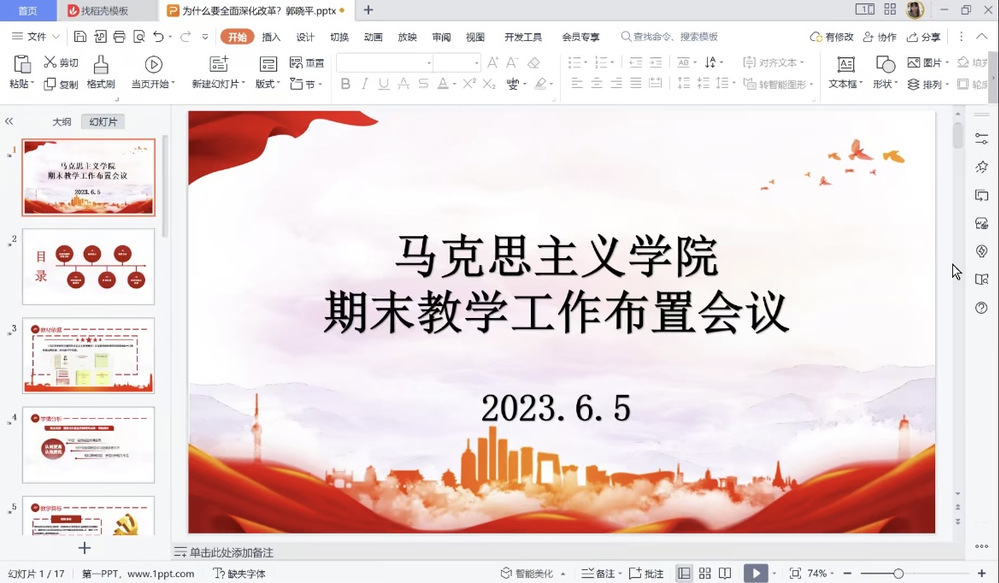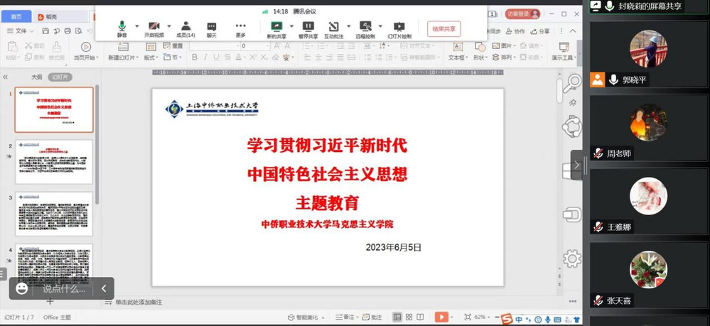 为确保本学期期末教学工作有序进行,圆满完成各项教学及管理工作,6月5日,马克思主义学院通过腾讯会议召开期末教学工作布置会议。学院全体教师参加会议,会议由马克思主义学院教学副院长郭晓平主持。 首先,马克思主义学院党支部书记封晓莉老师,按照学习贯彻习近平新时代中国特色社会主义思想主题教育的计划安排,对上周的学习内容“坚持和加强党对高校的全面领导”进行了重点强调,督促全体党员做好学习笔记,写好体会与感悟;本周中侨马院“以教育强国夯实国家富强之基”开启了集体学习,自学与集体学习相结合,使主题教育常态化、制度化,有条不紊地推进学习贯彻习近平新时代中国特色社会主义思想主题教育走深走实。