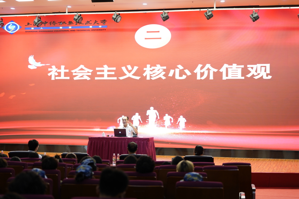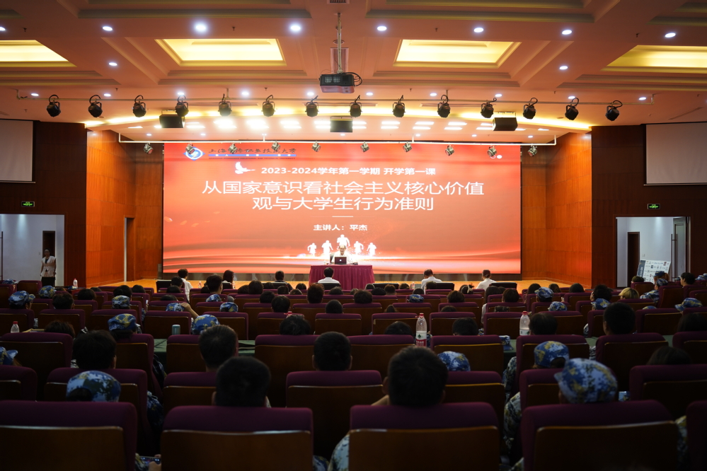 为学习贯彻习近平新时代中国特色社会主义思想和党的十二大精神,引导广大学子明确奋斗目标,做有理想、敢担当、能吃苦、肯奋斗的新时代好青年,9月13日上午,上海中侨职业技术大学2023-2024学年第一学期“开学第一课”,校党委书记平杰亲临教学一线,以“从国家意识看社会主义核心价值观与大学生行为准则”为题开讲“第一课”,主要围绕“国家意识”“社会主义核心价值观”“大学生初心使命”三个方面展开。马克思主义学院特聘教授孙玉良教授、全体思政课教师、校团委和宣传部等职能部门负责人、23级新生辅导员及23级本科新生代表齐聚图文楼报告厅,同上“开学第一课”。