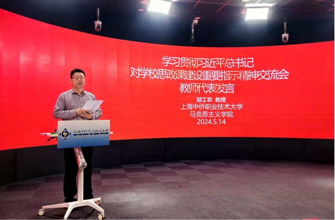 在教师讨论交流环节,郜工农教授以“探索适合中侨大学自己的现代思政课建设新路”为题,结合学校实际,分别从三个方面进行深刻阐释:一是紧扣大学教育使命,坚持思政课建设与党的创新理论武装同步推进,制订大学自身特色的思政课建设发展规划。二是积极探寻思政小课堂和社会大课堂结合的支点平台,是大学思政课建设的必由之路。三是加强思政课师资队伍建设,需要激发思政工作者的内生动力,提高思政教师的积极性创造性。