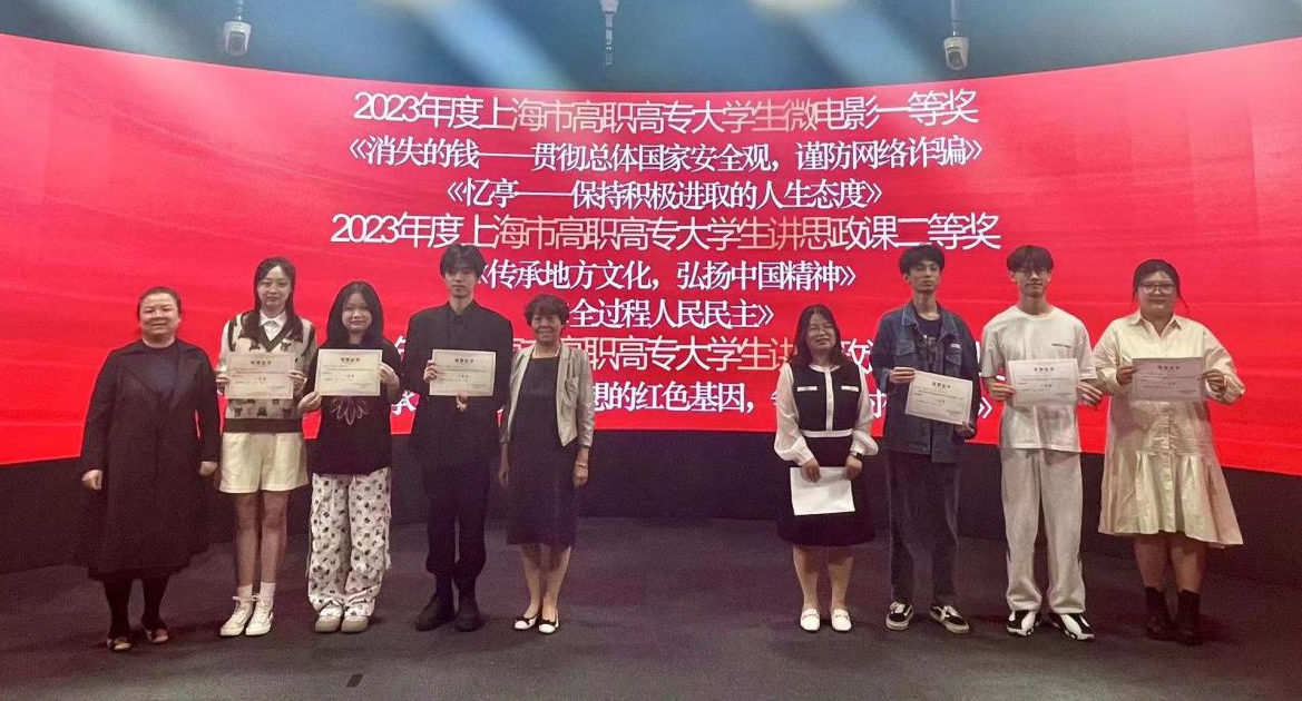 会议最后,学院为2023年度教育部和上海高职高专大学生讲思政课以及微电影获奖学子颁发了荣誉证书,激励学生们继续在思想政治理论学习和微电影创作等领域深耕细作,弘扬主旋律,传播正能量,为推进强国建设、民族复兴伟业贡献青春力量。