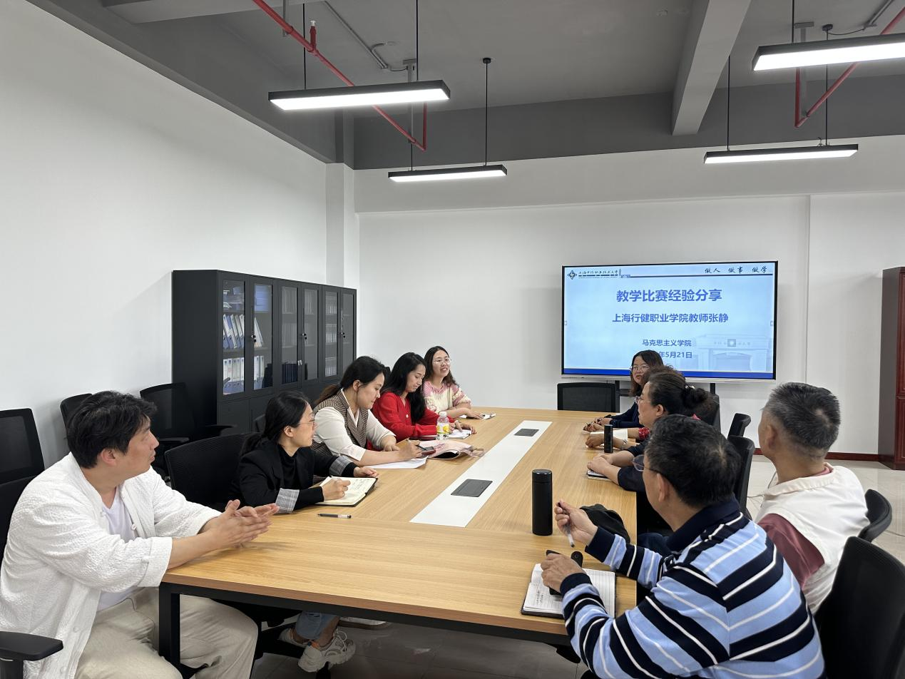 课后,马克思主义学院举行了教学比赛经验分享座谈会。首先马克思主义学院常务副院长张天喜对张静老师来我校进行思政课展示巡讲表示欢迎和感谢。她表示,张静老师的讲课选题具有时效性、讲授富有生动性,为我们展示了兼备理论深度和实践温度的示范课。其次,张静老师结合自身参赛经历,从对课程建设的思考、实践教学、备赛参赛等多个角度进行了经验分享。讲座结束后,与会老师纷纷表示受益匪浅,将认真学习相关经验,扎实做好教学科研工作,不断提升自身能力。