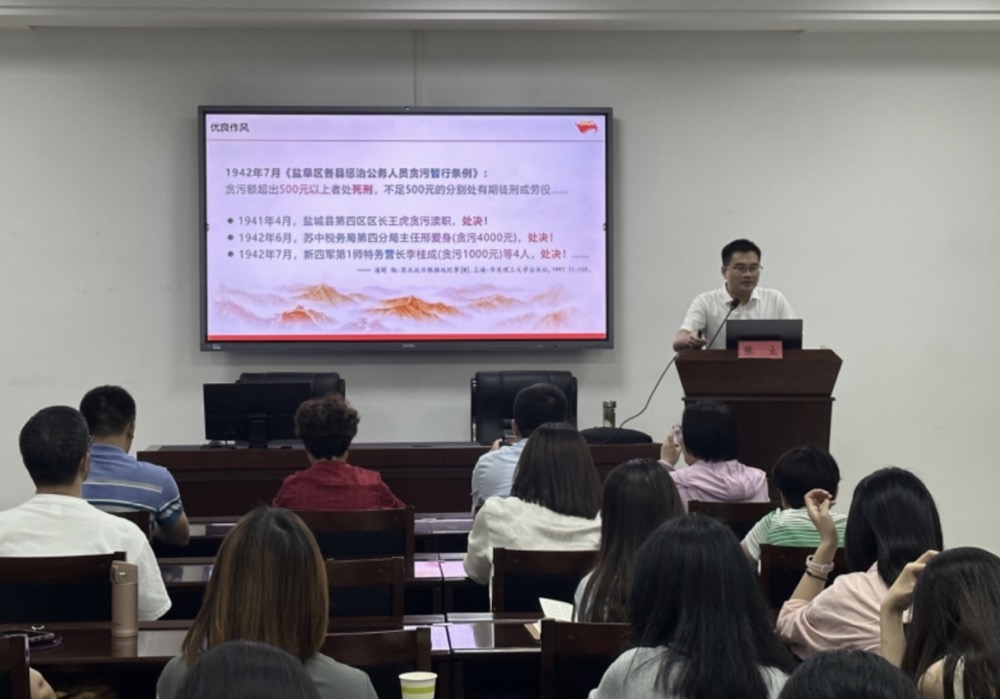 中共盐城市委党校宣教室副主任张立从“生动教材:新四军赢得民心的实践与经验、理论意涵和时代考题”三个方面给大家上了一堂内容丰富的党课。通过党课学习,大家更加深刻地领悟了习近平总书记“民心向背决定着历史的选择”这一重要论断。