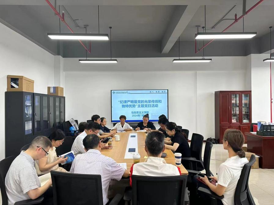 为庆祝中国共产党成立103周年,推动党纪学习教育走实走深,激励党员教师践行初心使命,2024年7月1日,马克思主义学院举办庆祝中国共产党成立103周年主题党日活动。会议由马克思主义学院党支部书记封晓莉主持。马院全体党员教师参加。