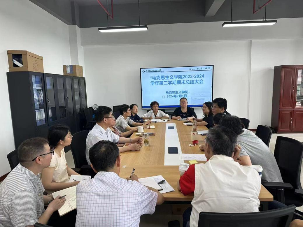 首先,张院长从教学、科研、管理、人才引进、学生培养、社会服务、教师培训等方面对本学期的工作进行了全面总结,使教师们多层次了解了本学期已取得的成果,为下一阶段的教学科研指明了方向。她谈到“众力并,则万钧不足举也;群智用,则庶绩不足康也”,充分肯定了教师们在本学期的辛勤付出和奉献精神,同时也指出了学院目前发展所面临的挑战。随后,她又对下学期的工作进行了展望与部署,并勉励教师们积极参加各项教师培训,鼓励大家在假期中实现自我超越。 接着,教学副院长郭晓平重点对期末收尾工作做了部署。她强调,强基固本抓细节,期末分数的登录务必要做到准确无误,试卷装订要规范有序,材料要完整齐全。同时,她敦促各教研室开展自查工作,确保收尾工作圆满完成。最后,她对“大学生讲思政课”和“我心目中的思政课”——微电影比赛活动做了相关安排,要求各指导教师做好相关指导工作。 会议最后,党总支书记封晓莉对即将召开的学习贯彻习近平总书记对学校思政课建设的重要指示,守正创新推动职业本科思政课建设内涵式发展研讨会暨全国职业本科思政课建设联盟筹备工作专题会做了工作部署,对假期安全和师德师风建设提出了具体要求,并恭祝每位教职工能度过一个健康、安全、充实的假期。