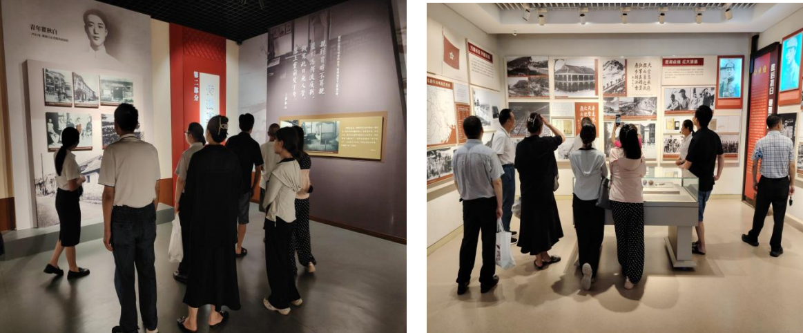为深入贯彻党的二十大精神,继承和发扬党的优良传统和作风,丰富红色文化教学资源,提升思政课教师的政治素养和业务能力,2024年8月10日至20日,上海中侨职业技术大学马克思主义学院开展了为期10天的赴原中央苏区研学活动,踏寻红色足迹,重温峥嵘岁月,汲取精神力量。本次活动重点围绕三个部分展开:专题讲座、现场教学、实践研学。 专题讲座 在学思中砥砺初心 本次活动中,我们集中聆听了瑞金市委党校副校长王俊峰教授和青年教师刘青环的专题讲座。王教授讲授的专题是《中央苏区与苏区精神》,系统还原了中央苏区和红军长征时期我党在极其艰难的斗争环境下书写的壮丽诗篇,深刻阐述了“坚定信念、求真务实、一心为民、清正廉洁、艰苦奋斗、争创一流、无私奉献“的苏区精神。刘老师则是在“二苏大”会址现场给我们讲授《中央苏区的群众路线》。党在中央苏区时关心群众生活,注意工作方法,铸就了伟大的苏区干部好作风。两次专题讲座的开展,让老师们在理论学思中砥砺初心,吸取奋进力量。