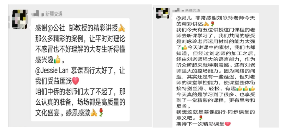 课后,新疆交通职业技术学院的师生表示,郜教授深入浅出的精彩演讲让学生觉得平时“生硬枯燥”的理论一下子具体形象起来,让学生们享受了一场“高质量的文化盛宴”,刘咏玲老师的语言魅力和运用教学案例的能力不仅活跃了课堂氛围,同时也激发了学生的学习兴趣。这种独特的跨地域学习体验实现了两校学生在云端共同创新、优质课程共学共享的美好愿景,希望两校能够以此为契机,搭建多元化的交流合作平台,在学科建设、人才培养以及课程建设等方面开展更密切的合作,携手打造东西部职业院校同步课堂合作交流的典范。