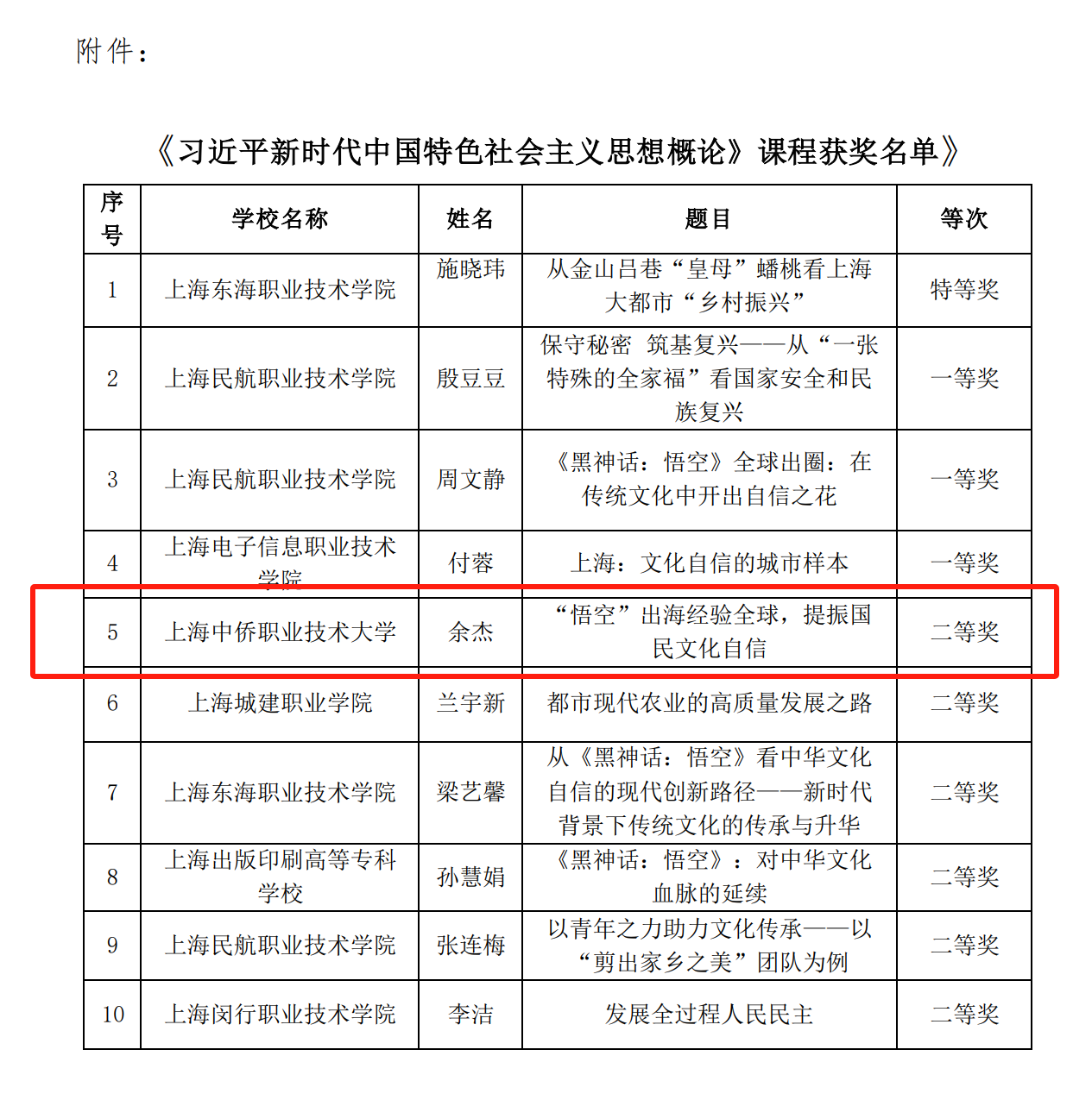 潜心教坛再创佳绩,丰收硕果再迎新年。近日,马克思主义学院在2024年上海市高职高专院校思想政治理论课教学案例设计竞赛、大学生讲思政课及微电影制作大赛中成绩斐然、捷报频传! 在2024年上海市高职高专院校思想政治理论课教学案例设计竞赛中,《习近平新时代中国特色社会主义思想概论》、《思想道德与法治》、《毛泽东思想和中国特色社会主义理论体系概论》三个课程的总奖项数目为39项,马克思主义学院获得的奖项总数为13项,喜获一等奖2项、二等奖11项,获奖数量在全市高职高专院校中名列前茅。这些成绩充分体现了马克思主义学院在思想政治教育教学改革中的突出成果,也彰显了马克思主义学院教师的教学能力、理论素养和创新意识。