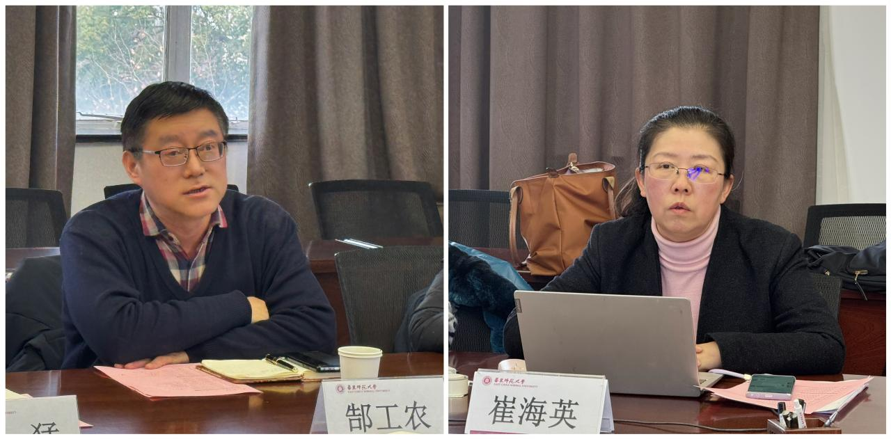 在自由交流研讨环节,我校马院郜工农教授表示希望能够与华东师范大学马克思主义学院进行合作,结合金山卫抗战遗址、金山农民画等特色资源一同打造金山区思政课实践基地,同时让“三个百里”从理论上更有高度,在地方上更有热度。通过这一些列的举措力图进一步推进城乡融合,助力实现乡村振兴。随后,我校马院王猛老师就《形势与政策》课程管理与华师大党委副书记崔海英老师进行了经验交流。崔老师从《形势与政策》课程的改革、课程内容设计、课程考核标准等方面的经验进行了总结。