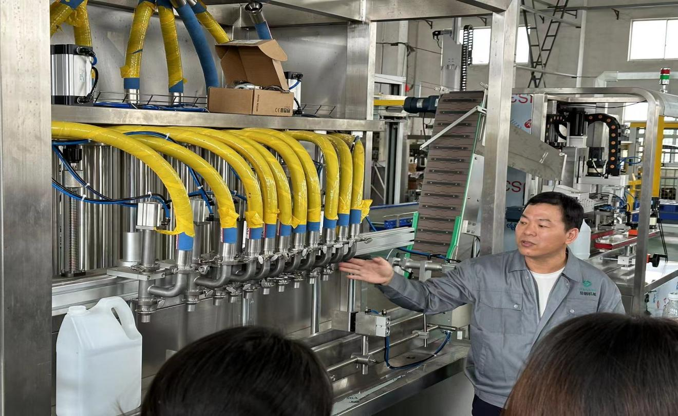 活动中,上海昱钢包装机械有限公司的负责人首先介绍了公司专注的领域——瓶装包装自动化流水线的设计与制造。作为该领域的佼佼者,昱钢公司不仅积累了丰富的经验,更拥有了雄厚的技术实力,能够为客户提供高度个性化的定制解决方案,满足各种复杂的生产需求和应用场景。 现场,学生们参观了公司的各类自动化流水线设备,从基本的传感器驱动流水线到采用先进技术的高端自动化流水线,昱钢公司的产品线层次丰富,涵盖了不同规模和复杂程度的生产需求。学生们在现场观摩了昱钢厂区车间的包装流程,亲身体验了一体化包装车床,深切感受到了先进智能制造业的魅力。通过这些直观的感受,学生们逐步理解了新质生产力的高科技、高效能、高质量特征。