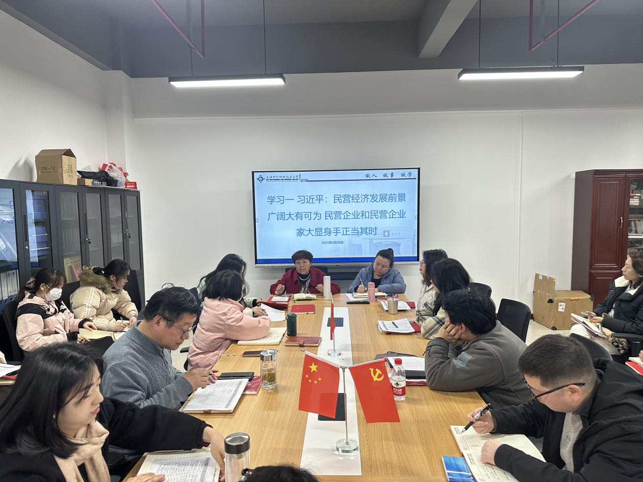 会议最后,封书记带领全体教师深入学习习近平总书记在二〇二五年春节团拜会上的讲话、在哈尔滨第九届亚洲冬季运动会开幕式欢迎宴会上的致辞和在民营企业座谈会上的重要讲话精神,深刻领悟习近平总书记重要讲话精神,坚持不懈用习近平新时代中国特色社会主义思想铸魂育人。她号召全体教师要以实际行动践行“马院姓马,在马信马”的鲜明导向,并强调教师们要认真学习最新的理论成果,及时记录学习笔记,深入思考并应用于教学实践,不断提升自身的理论素养和教学水平。