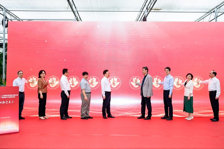 随后,上海中侨职业技术大学曹雨平宣读《上海中侨职业技术大“大思政课”教学法研究中心成立决定》。金山区委常委、常务副区长邱运理,华东师范大学党委副书记孟钟捷,上海市民办教育综合党委副书记江鸿波,上海市教育委员会德育处副处长杨长亮,金山区委宣传部副部长、区政府新闻办公室主任盛建军,金山区教育工作党委书记郑瑛,金山区吕巷镇党委书记朱爱萍,致达集团党委书记徐辉,上海中侨职业技术大学校长曹雨平共同为研究中心揭牌。该中心将致力于思政课教法融合创新,探索形成可推广、可示范的大思政课实践教学模式。