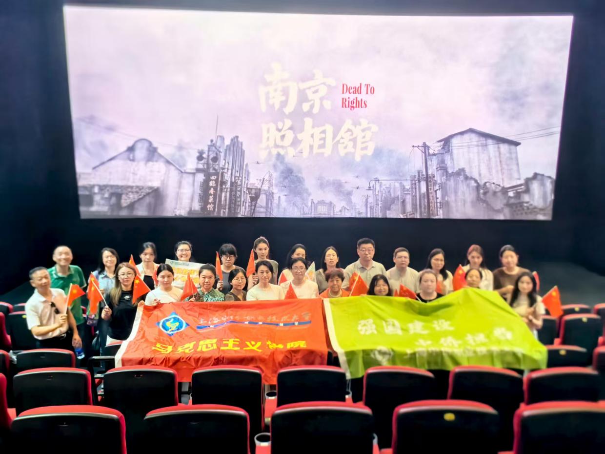 为纪念中国人民抗日战争暨世界反法西斯战争胜利80周年,弘扬伟大的抗战精神,9月8日下午,马克思主义学院思政教师的《开学第一课》-----银幕思政课如期进行。马院教师集体观看了爱国主义题材影片《南京照相馆》,以观影形式开展主题教育,庆祝第41个教师节。 《南京照相馆》以1937年南京大屠杀的历史为背景,以深陷危城的普通照相馆为窗口,透过照相馆老板和普通平民在日军铁蹄下的挣扎、抗争与坚守,用细腻克制的镜头语言,再现了那段山河破碎、血火交织的至暗时刻。影片虽无宏大战争场面,却于细微处惊心动魄,记录下暴行下的个体伤痛与人性光辉,深刻揭示了中华民族在生死存亡之际所迸发出的不屈意志。一幅幅定格的黑白影像,既是对侵略屠杀的无声控诉,又是对正义和平的期盼追求,更是对民族精神的真情呐喊。