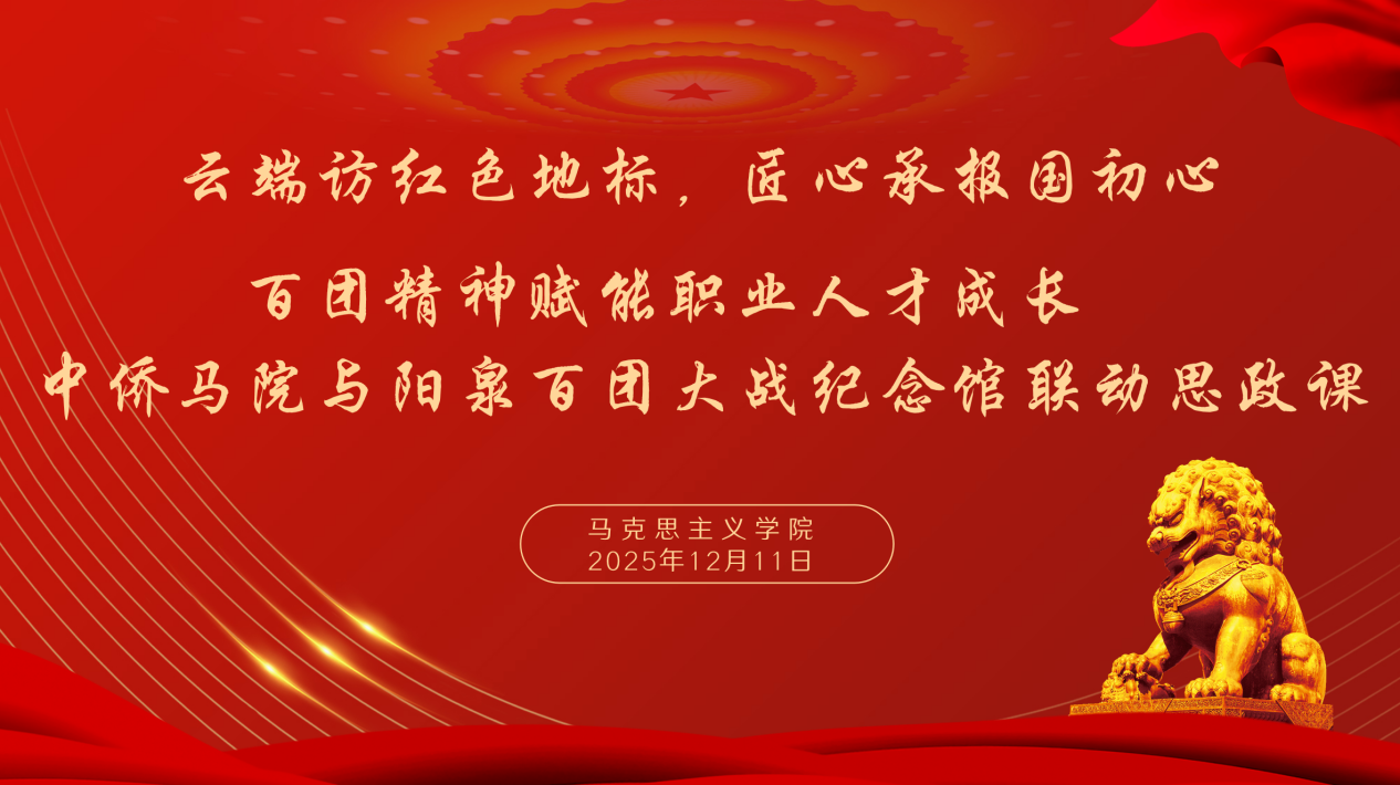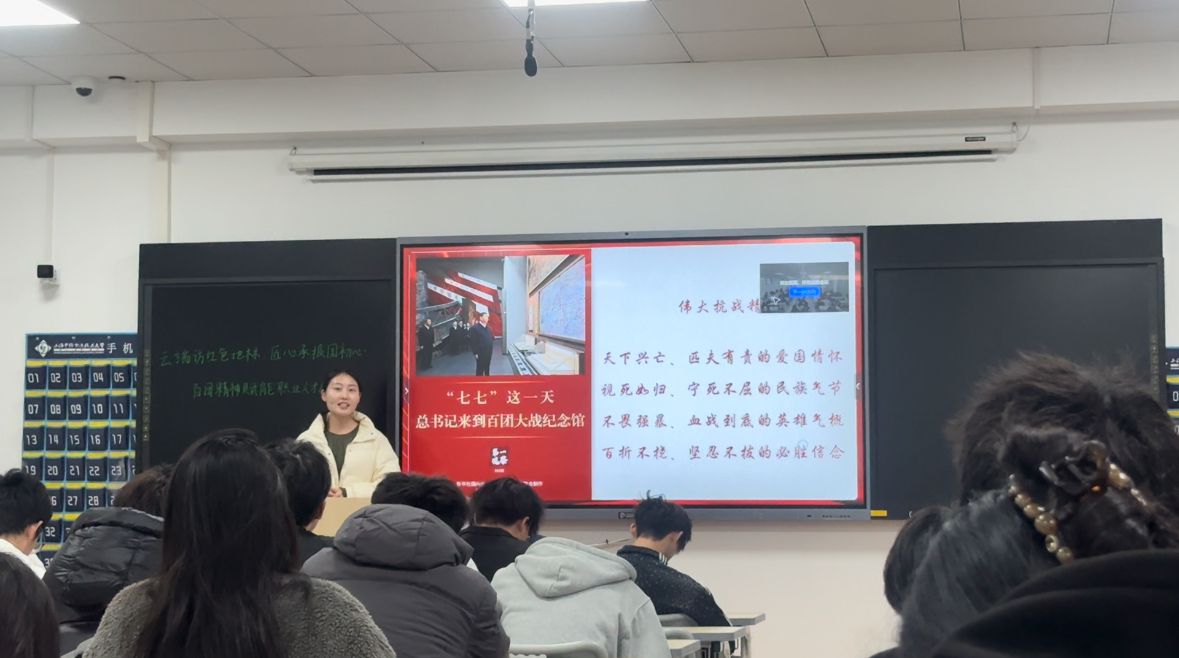今年7月7日,习近平总书记在山西阳泉市向抗战烈士敬献花篮并参观百团大战纪念馆,强调百团大战的历史壮举充分展现了我们党在全民族抗战中的中流砥柱作用,要求讲好抗战故事,把伟大抗战精神一代代传下去。为深入贯彻落实这一重要指示精神,在纪念中国人民抗日战争暨世界反法西斯战争胜利80周年之际,12月11日,马克思主义学院创新思政课教学模式,与阳泉百团大战纪念馆开展了一堂线上线下联动、历史与现实交融的主题思政课。