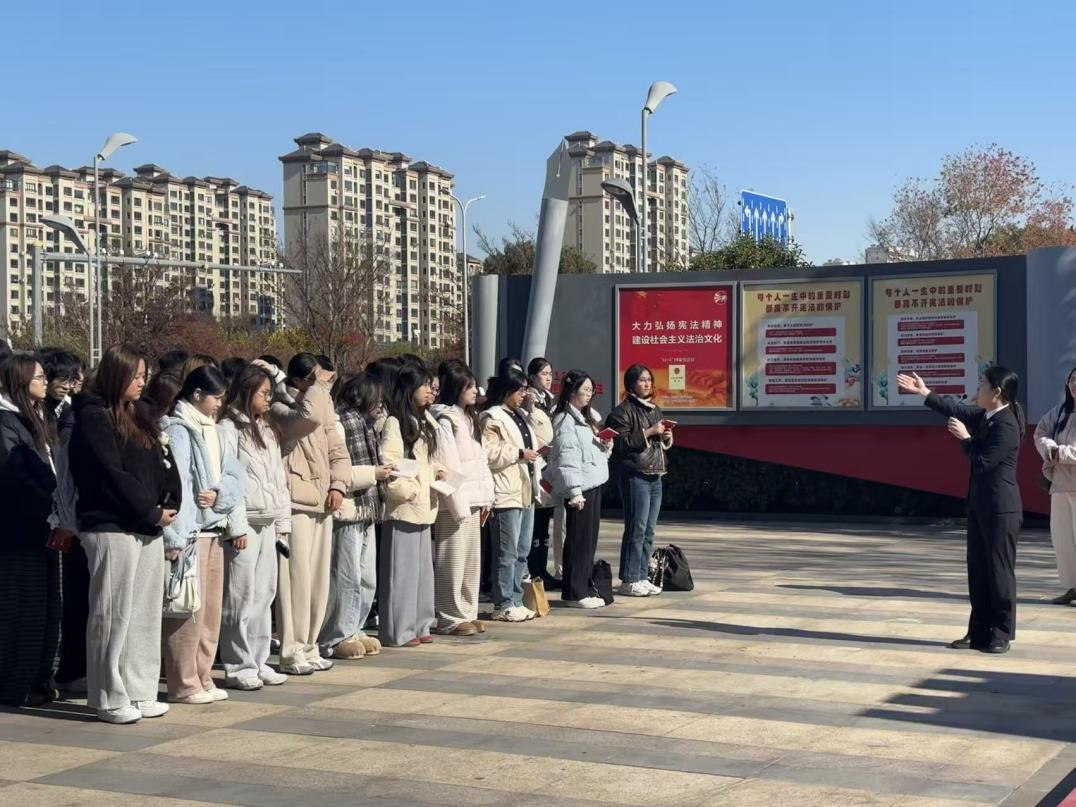 国家宪法日当天的宪法主题公园实践,是法治精神从文本走向现实的鲜活延伸。活动伊始,庄严肃穆的法治文化广场上,全体师生身着整齐服装,面向鲜红的国旗肃立。“我宣誓:忠于中华人民共和国宪法,维护宪法权威,履行法定职责……”激昂的誓言声中,师生们高举右拳,神情庄重,每一个字都铿锵有力,回荡在广场上空。这场宣誓不仅是对宪法的庄严承诺,更承载着一份特殊的责任担当——未来,他们将凭借专业知识与实践能力,积极参与立法意见征询,让基层群众的心声通过“立法直通车”直达法治建设前沿,为完善法律法规注入高校智慧。