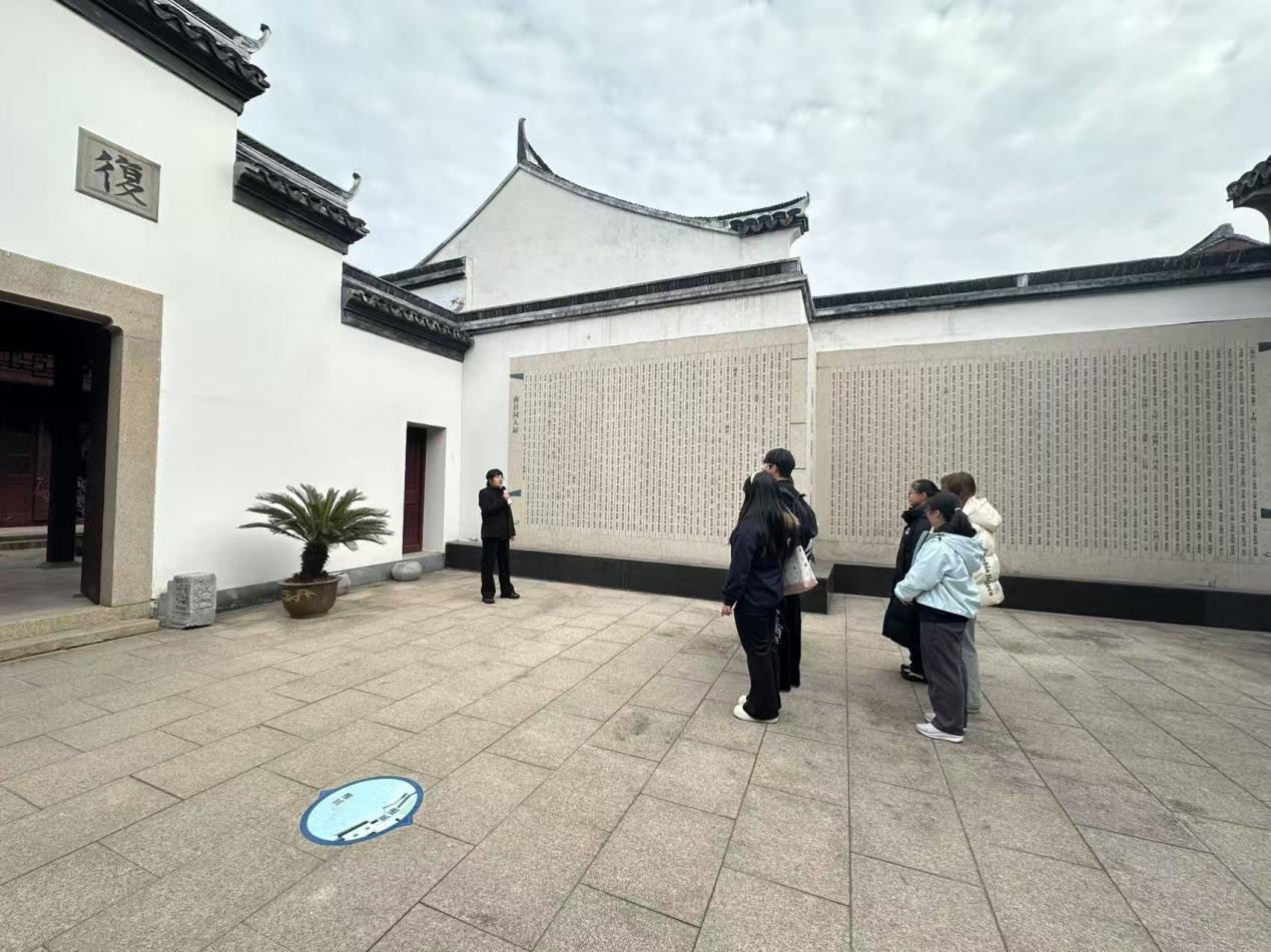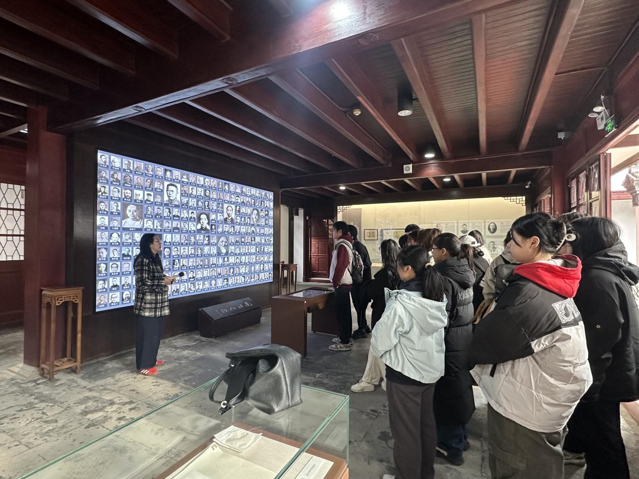 12月5日,马克思主义学院开展“行走的思政课”系列课程,带领学生前往位于上海市金山区张堰镇的南社纪念馆,进行现场参观与实地授课,通过沉浸式、情境化的教学方式,引导青年学子切身感受近代先进知识分子以文报国、投身革命的家国情怀与历史担当。习近平总书记指出:“思政课不仅应该在课堂上讲,也应该在社会生活中来讲。”“要把课堂教学和实践教学有机结合起来,充分运用丰富的历史文化资源,紧密联系中国共产党和中国人民的奋斗历程,深刻领悟马克思主义中国化的内在道理。”马院“行走的思政课”系列课程将思政课堂搬到历史纪念馆、现代工厂、乡村田园等各类社会生活的“大教室”之中,让学生在实地场景中感受新时代的改革发展成果,强化对于思政理论知识的领会。