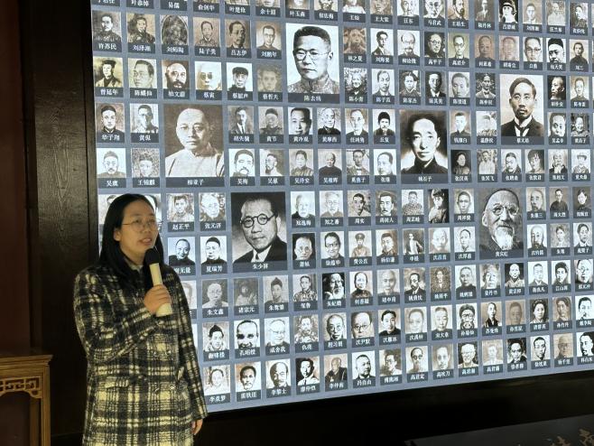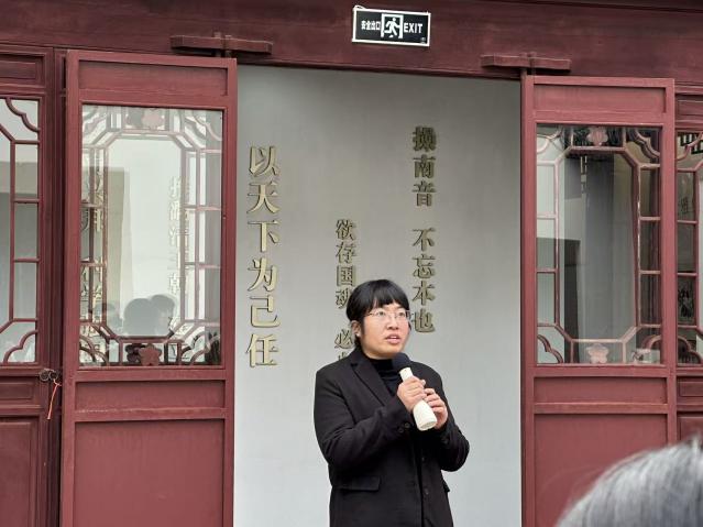在纪念馆内,李雪老师从南社诞生的历史背景讲起,为学生深入剖析了二十世纪初内忧外患的时局下,陈去病、高旭、柳亚子等一批满怀理想的文人志士,如何以“操南音,不忘本”的精神内核集结成社,将文学创作与民主革命紧密结合,以笔为枪,吹响思想启蒙与革命宣传的号角。南社兼具文学团体与革命团体双重属性,它不仅是“近代史上爱国知识分子最集中、文化水平最高、职业面最广、参加人数最多”的团体,更是辛亥革命重要的舆论先锋,通过《南社丛刻》等刊物,社员们发表了大量激扬文字,揭露清廷腐朽,传播民主共和理念,为革命的爆发与推进奠定了深厚的思想基础。