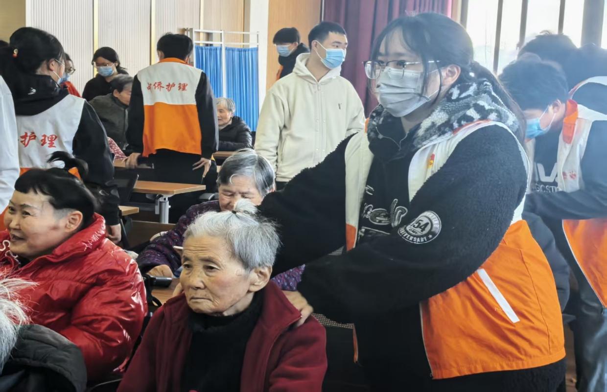 冬阳穿过梧桐的枝桠,在敬老院的小径上洒下斑驳的光影。在这个岁末的清晨,温暖如约而至。朔风微寒,情暖冬日。2025年12月11日上午,位于九堰的敬老院内一改往日的宁静,洋溢着阵阵欢声笑语与关怀问候。为切实关注老年人“沉默的杀手”——骨质疏松症,提升晚年生活品质,上海中侨职业技术大学马克思主义学院模拟政协社团与护理与健康学院团委社会实践部联合行动,为这里的老人们带来了一场集专业健康服务、生动科普宣教与温情文艺陪伴于一体的“保护骨骼健康,提高生活质量”主题活动。这不仅仅是一次志愿服务,更是一堂行走的、充满温度的“社会实践课”,是青春与岁月最美好的相遇。