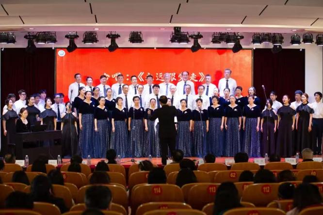 活动在合唱《永远跟党走》中拉开帷幕,中侨大学合唱团与嘉定未来合唱团联袂演唱,传递青年学子爱党爱国的精神风貌。活动前期,张堰中学各特色社团带来机器狗展示、OM 展演、越剧表演等成果展示,充分展现校园育人活力。