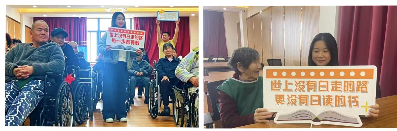 世上没有白走的路,更没有白读的书。阅读不只是局限在教室的书本里,敬老院里的人生岁月,也是一本值得细细品读的无字之书。在老师的带领下,我们走进敬老院,近距离陪伴老人,耐心聆听他们的过往。老人们一辈子朴实生活,吃过苦、受过累,经历过平凡却厚重的一生。他们用简单直白的话语,讲述年代变迁与生活感悟,没有华丽修饰,却满是生活的智慧,让我们学到课本上学不到的踏实与知足。大家也将这份实践感悟记录进读书笔记,让理论学习与实践体会相互交融。